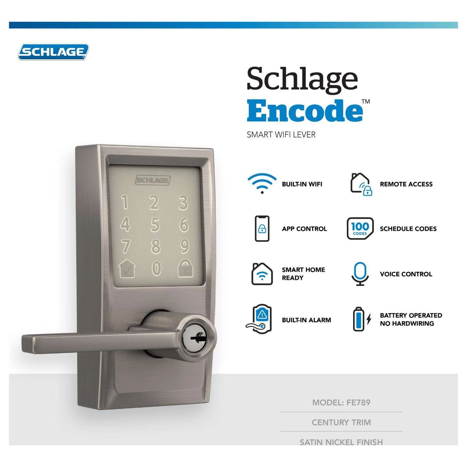 | Search Field | Schlage Encode Satin Nickel Metal WiFi Deadbolt with Latitude Lever Door Knobs and Locks Electronic Entry Door Locks DOOR LOCKS DIGITAL & ELECTRONIC LOCK INGERSOLL RAND (SCHLAGE/FALCON Schlage Encode |